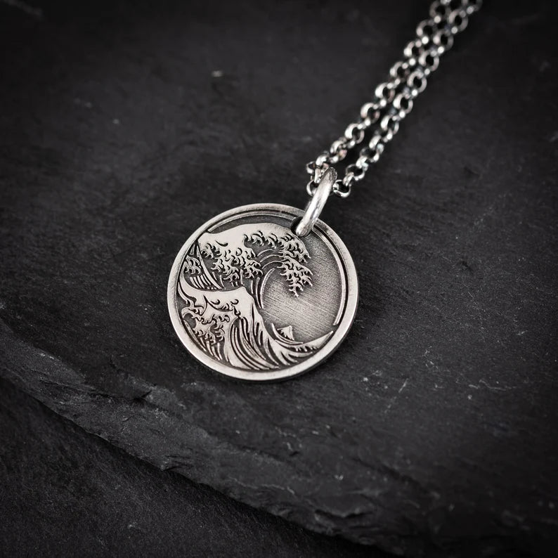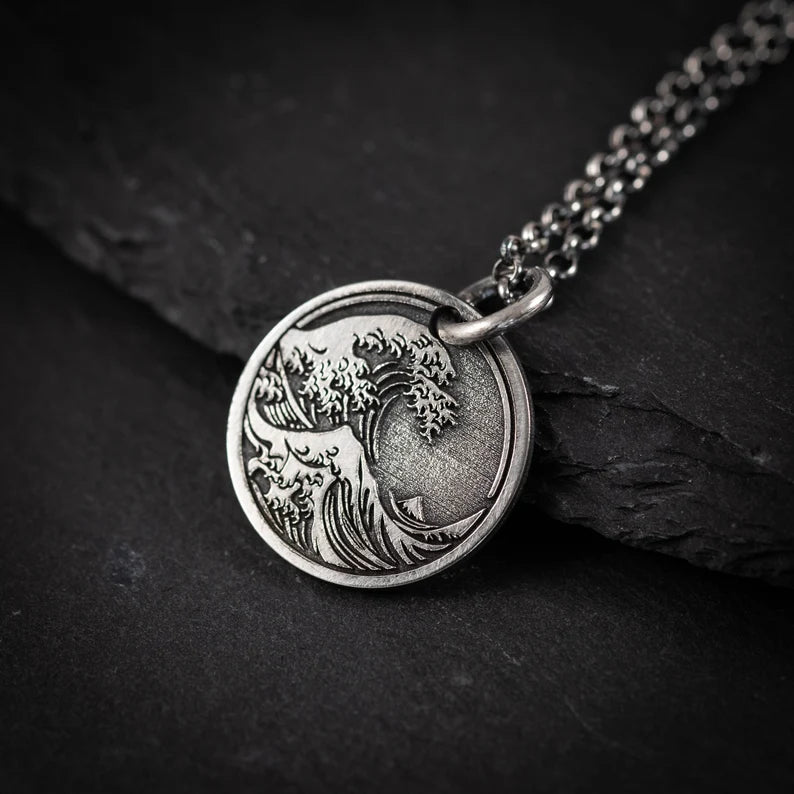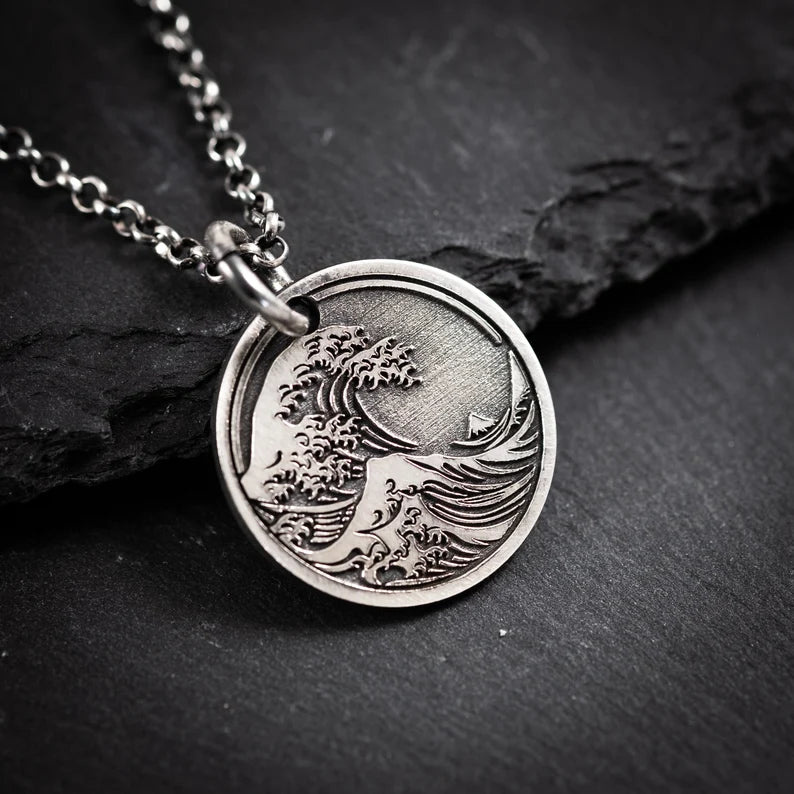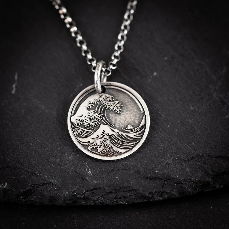 Ocean Wave sterling silver Pendant Necklace, Men's Wave Necklace, Beach handmade Jewelry, Surfing Necklace, Ocean Lover Gift